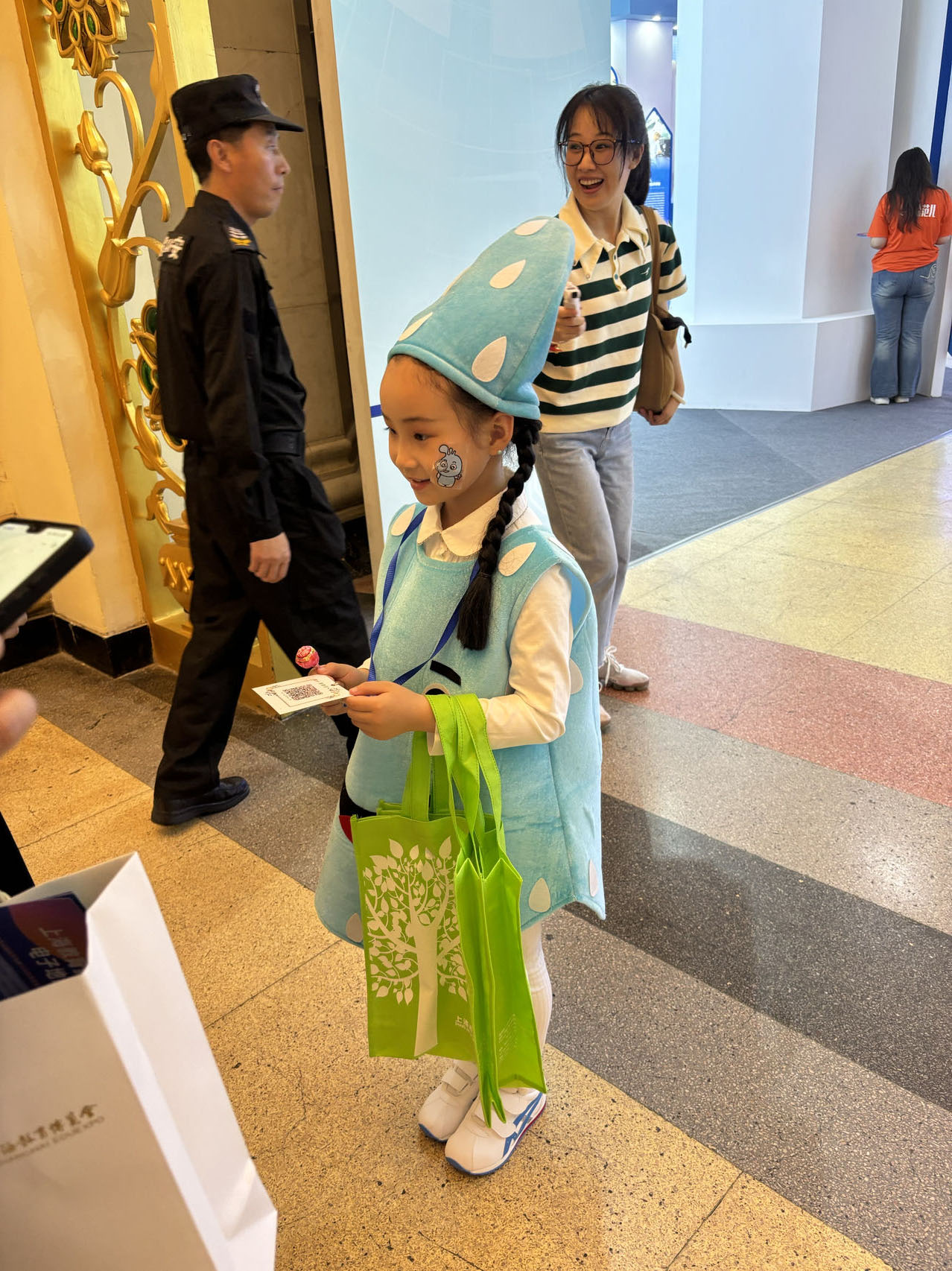 萌萌的小学生教博会现场科创互动。澎湃新闻记者 韩晓蓉 图