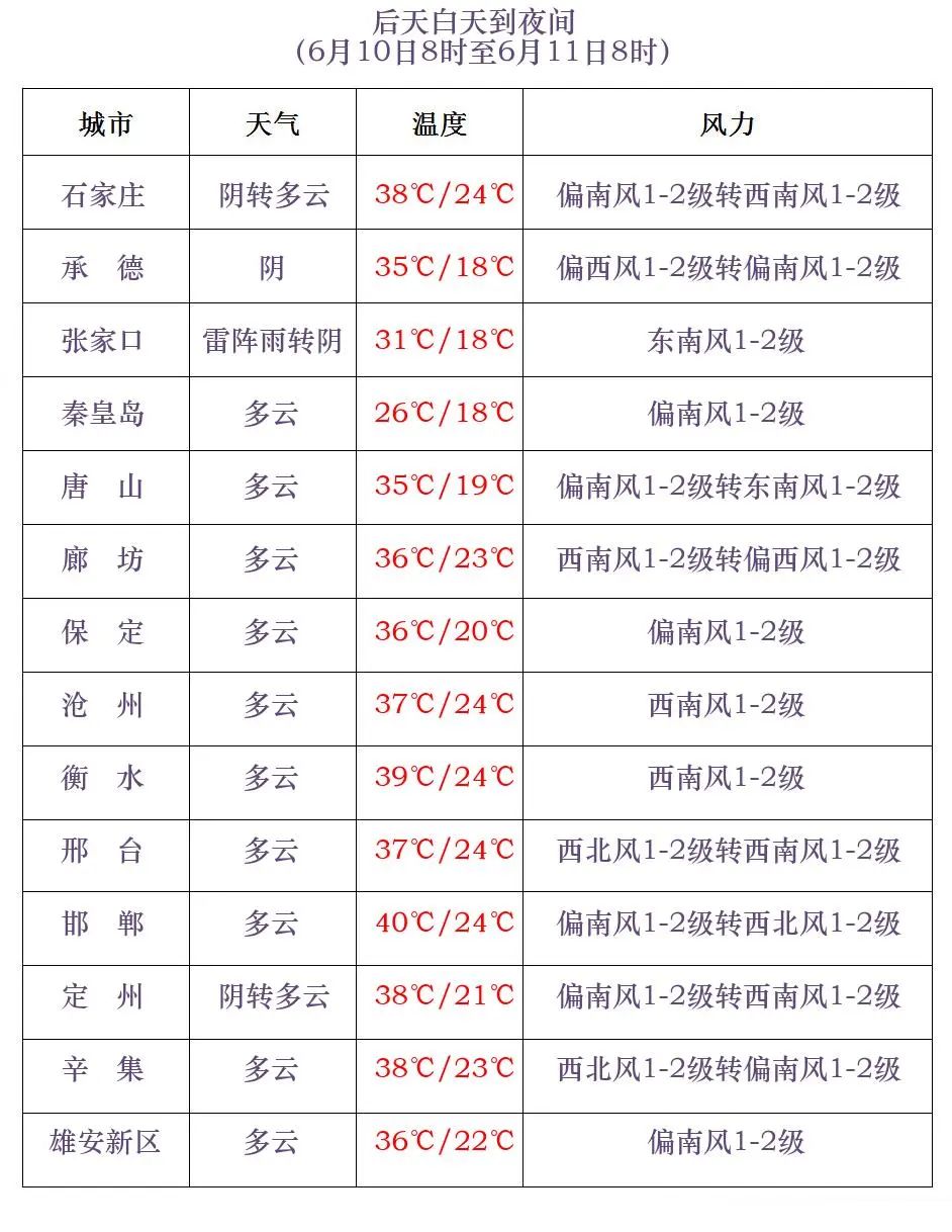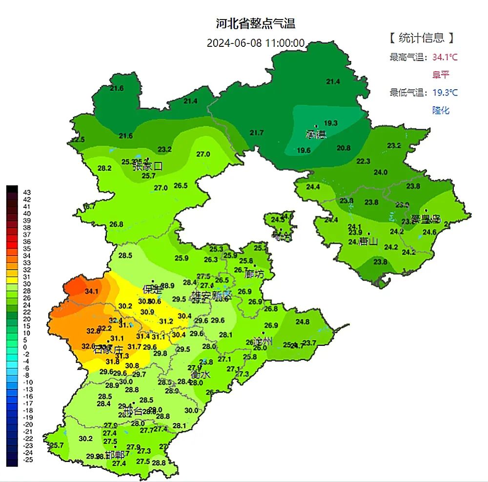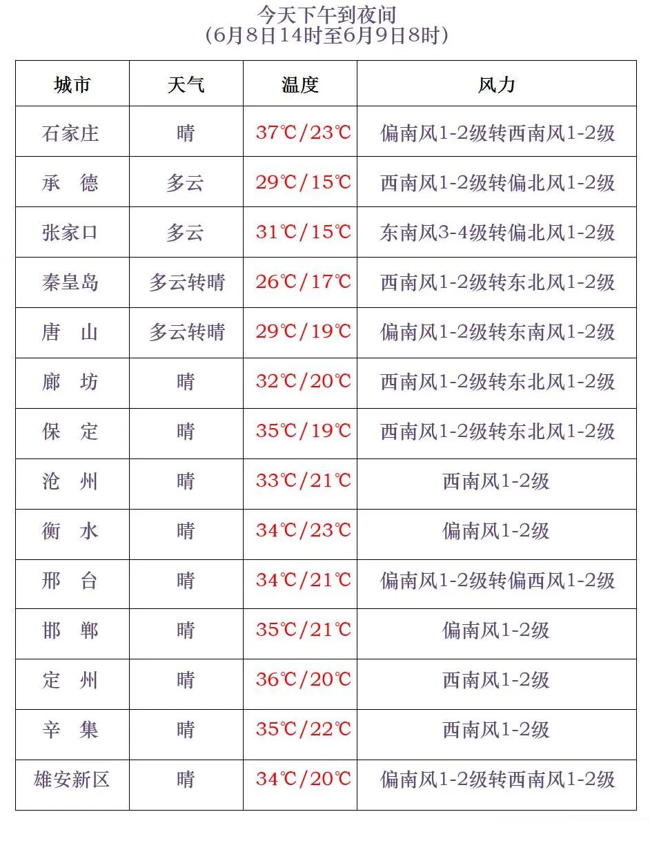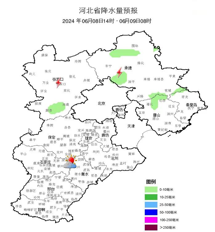 河北省气象台2024年6月8日11时发布天气预报: