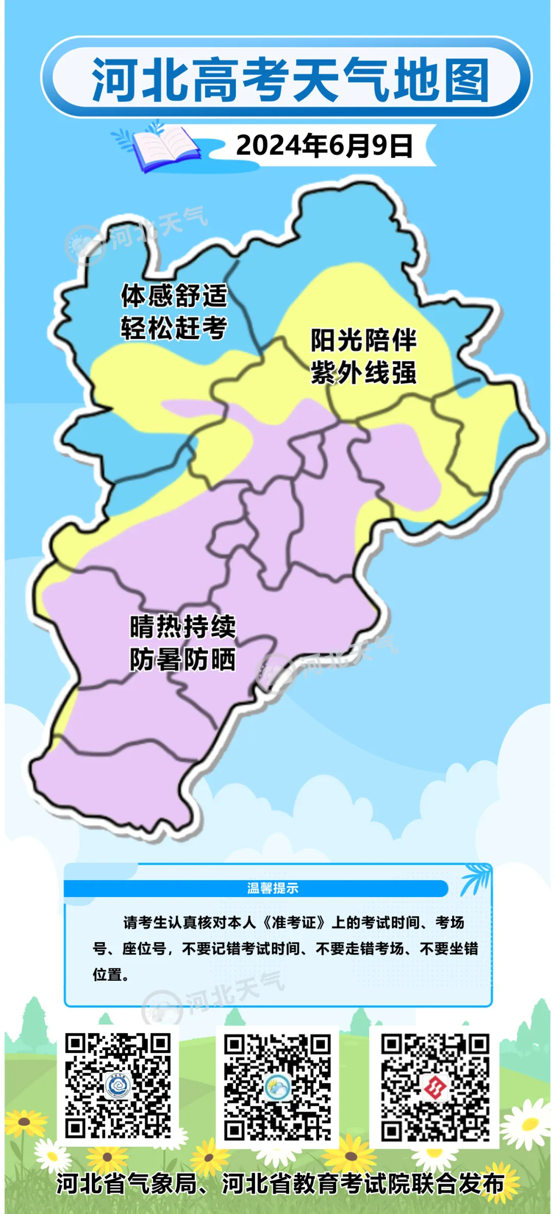 明天(9日)是高考第三天,河北高考期间天气形势如何?一起来看2024河北高考天气地图。