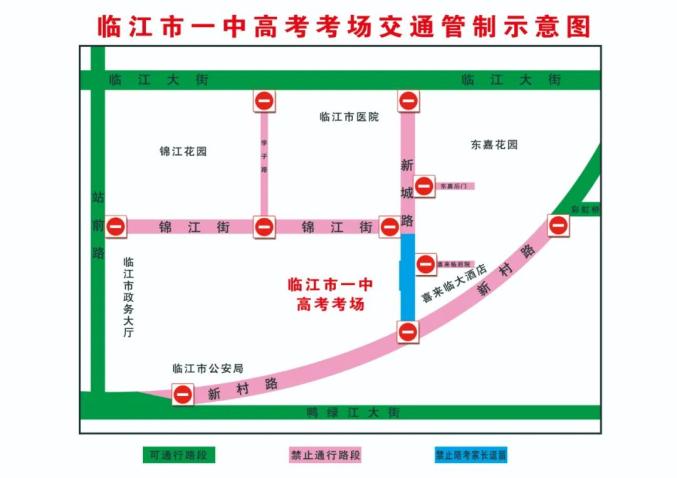 延吉市公安局交通警察大队将对延边一中、延边二中和延吉市一中考场周边采取临时交通管制措施,高考期间禁止一切车辆通行、鸣笛。