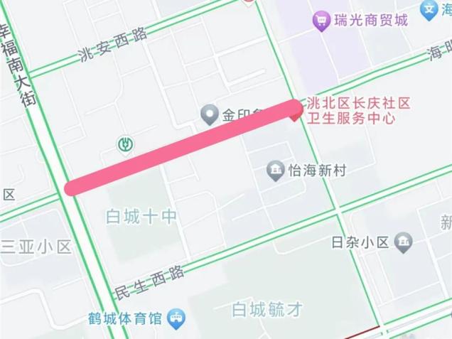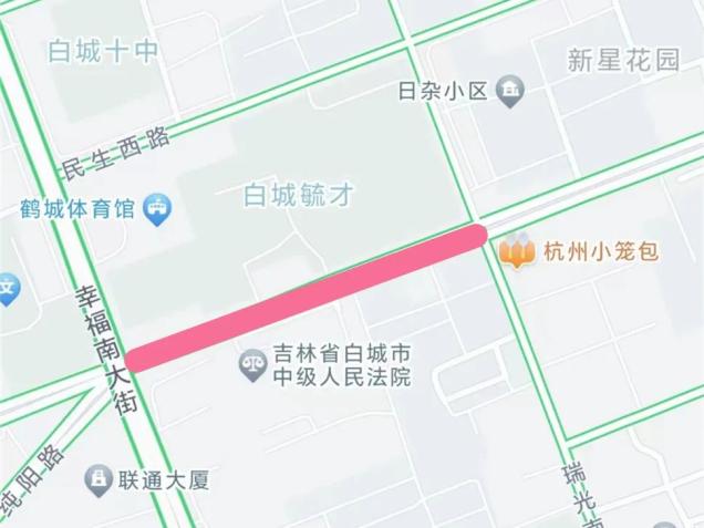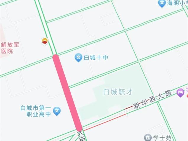 育才中学西门前路段:南起南环路与艳阳路交汇处路口(图中南环路育才中学道口),北至艳阳路与阳辉街交汇处(图中教育局道口)。