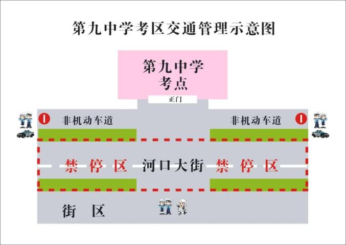 (一)交通管制时间:6月6日14时至15时(执勤演练);6月7日7时30分至12时、13时30分至17时30分;6月8日7时30分至10时30分、13时30分至17时30分;6月9日7时至12时30分、13时至18时30分对考场周边道路进行封闭。