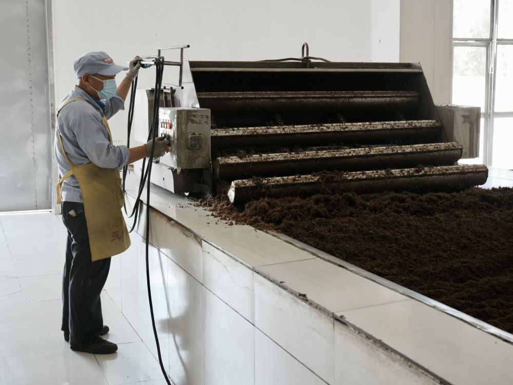 图为岐山天缘醋产业园内工人正在操作自动翻醅机。(新华社记者赵英博 摄)