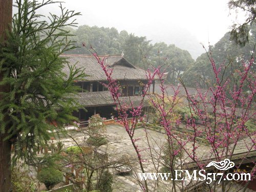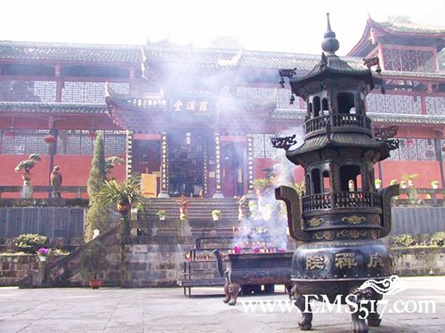 大雄宝殿是清朝顺治八年(1651)年重修的,在殿前有很多长明灯,也叫做佛前海灯,寺宇建筑构成若干个四合院,随意性很强,但有一点很具有代表性的,完全带有川西民居特色的烙印。峨眉山地处盆地西南,受地域文化的影响很大,工匠来自民间,民间建筑与寺庙建筑手法相融,重檐,单檐,歇山,悬山,硬山并用。小青瓦,木皮屋面,素脊,几近院落,一般以主殿"大雄宝殿"为主。