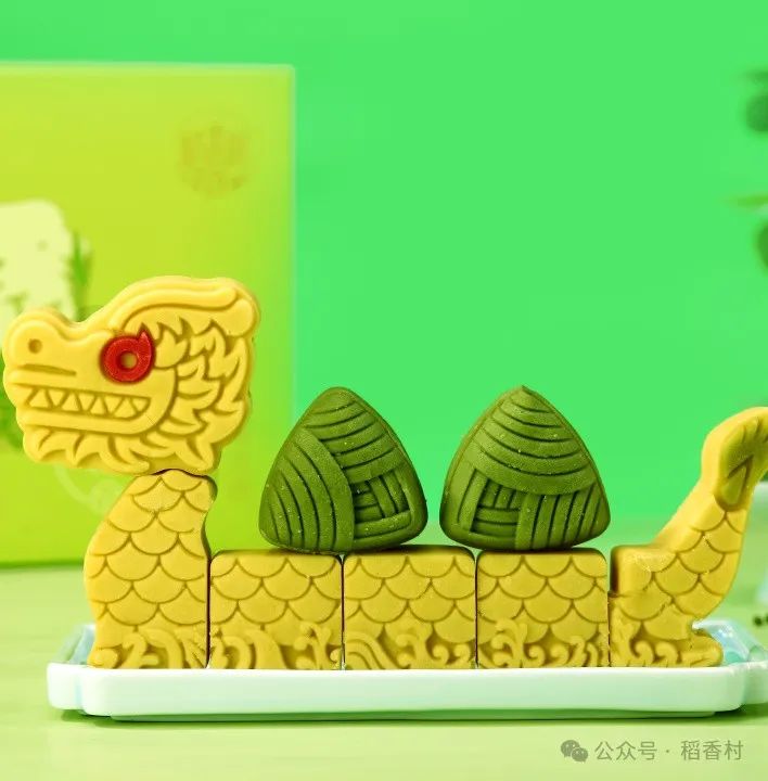 和一款龙舟造型的低糖绿豆糕