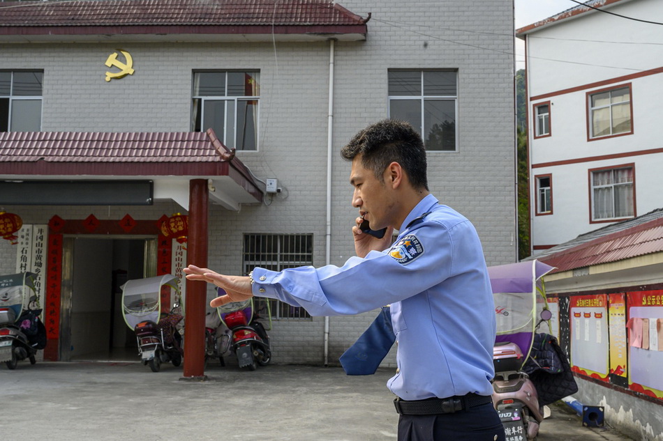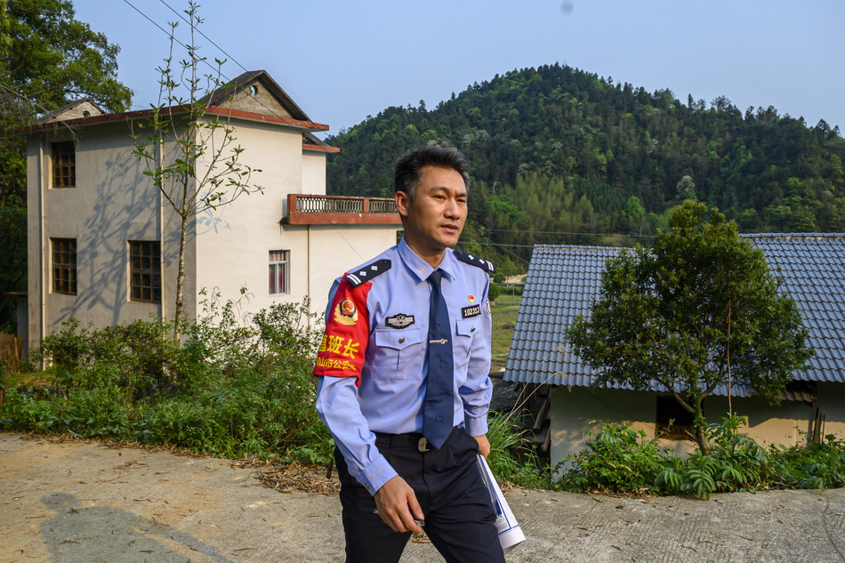 地处山区的黄坳乡,很多地方车辆无法通行。2021年4月2日,李敏步行前往辖区内居民家中进行反电信诈骗宣传。