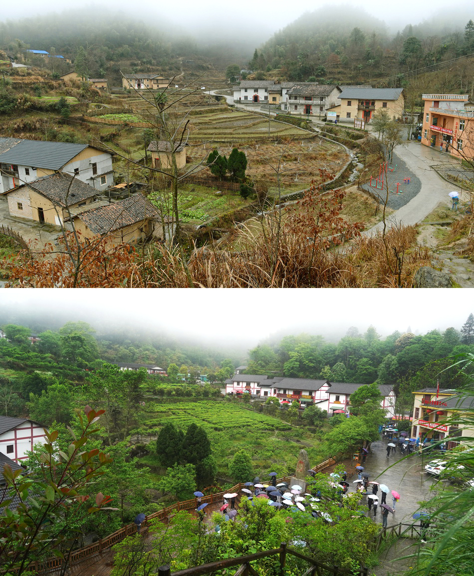 上图:2016年1月31日,井冈山市茅坪镇神山村。下图:2021年4月26日,游客在井冈山市茅坪镇神山村游览参观。新华社 图