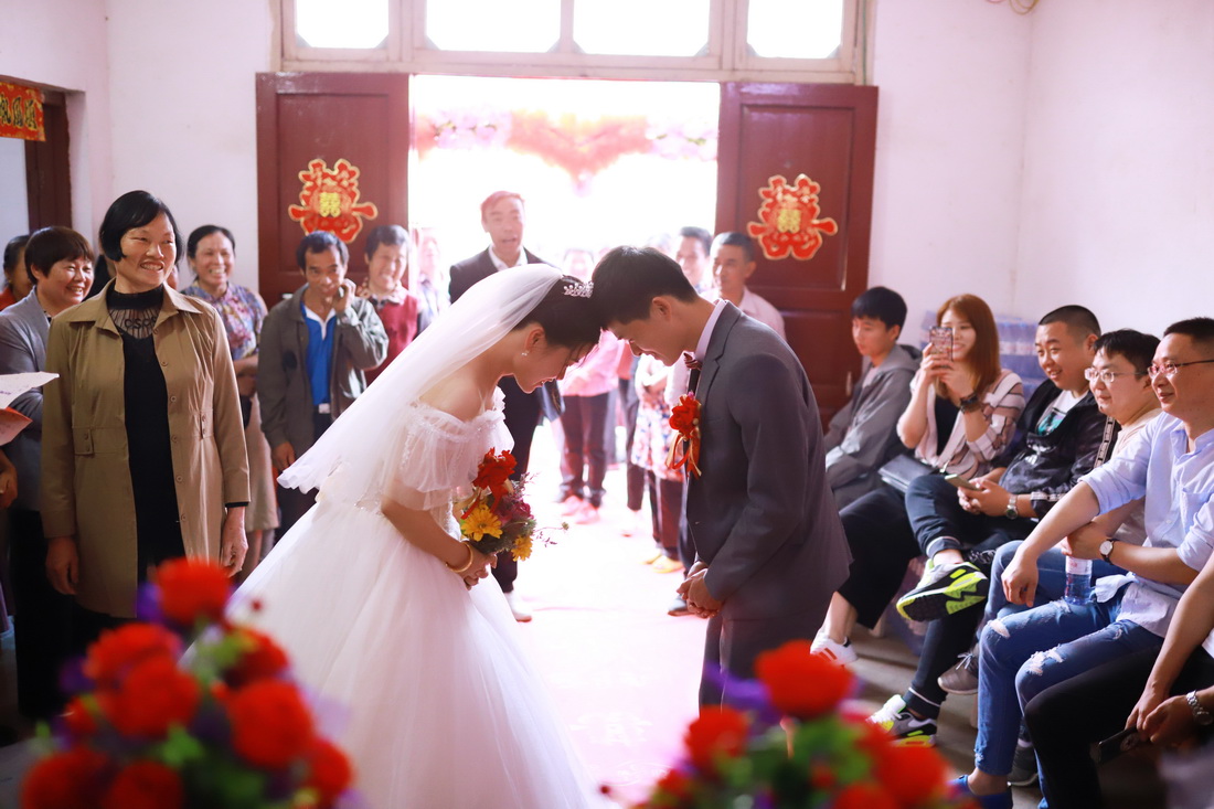 去年抗疫期间,谢萍作为志愿者忙于抗疫一线错过了婚期。今年五一期间,她与爱人在老家重新举行婚礼。