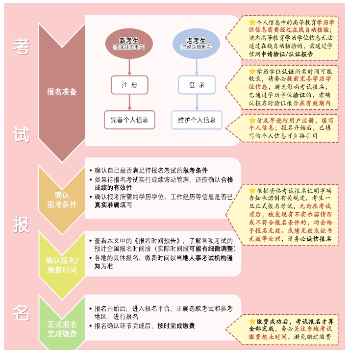 ★根据资格考试报名证明事项告知承诺制有关规定,考生一旦正式报名考试,无论在考试前后,被发现有不实承诺情形或不符合报名条件的,均会给予报名无效、成绩无效或证书无效等处理,请务必诚信报名。