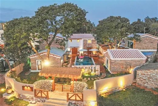 进驻流下村的花田久第度假庄园定位高端,古屋、古船、古井成为其着重打造的特色。“我们民宿里有一口百年古井,井水被引入客房内供饮用。”负责人张秀锦介绍,民宿占地15亩,共有15间房,形成“一间房平均用地1亩”的轻奢布局。