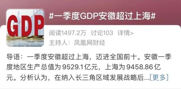 图|一季度GDP安徽超过上海的微博热搜