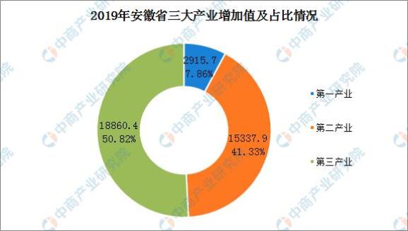 图|2019年安徽省三大产业增长值及占比情况(图源:中商产业研究院)