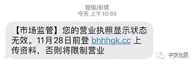 王先生的手机上忽然接到一条短信,上面写着:“【市场监督管理】您的营业执照显示状态无效。X月X日前登xxxxxx.xx上传资料,否则将限制营业!”