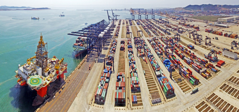 航拍大连港大窑湾集装箱码头(6月13日摄)。