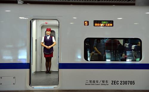 7月1日,西安北至太原南D2012次首发列车驶出西安北站。新华社发(唐振江摄)