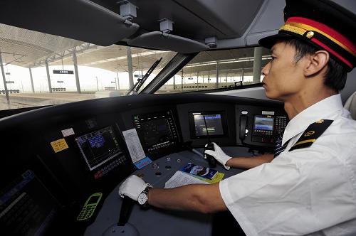 7月1日,大西高铁太原南驶往西安北的D2011次动车驾驶员准备发车。新华社记者  范敏达  摄