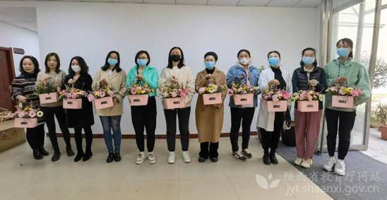 【渭南市】该市教育局通过微信公众号发布《敬“她”》向所有女同志送去节日祝福。各县市区教育局机关、校(园)围绕健康讲座呵护“她”、团体操展示愉悦“她”、趣味运动会展示“她”、主题团建幸福“她”、读书分享魅力“她”、“三八”国际劳动妇女节表彰肯定“她”等主题开展形式多样的系列活动,表达对“她”们真诚的祝福。3月8日上午,合阳县教育局为机关全体女同志送上健康讲座“大礼包”和插花课程;临渭区教育局开展“巾帼展风采 建功新时代”主题座谈会,党委书记、局长邢唯远参加座谈会并为机关女同志送去祝福。临渭区丰荫明德小学开展“减压赋能·邂逅最美的你”主题教工团建活动,南塘小学开展“魅力女神节 南小喜相约”“三八”国际劳动妇女节体育趣味活动,“线上乒乓球”“气球运纸杯”等游戏活动让平时忙于教学的“仙女”们开怀大笑,身心愉悦,也激发了“半边天”在教育教学工作中的积极性和创造性。