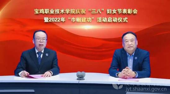【宝鸡职业技术学院】该院在融媒体中心以视频直播形式对2021年度“文明家庭”“最美教师”“师德标兵”“巾帼建功标兵”的获得者进行表彰,对2022年“巾帼建功”活动进行动员安排。通过活动号召全院各级工会和妇联组织,深入学习贯彻习近平总书记关于妇女工作的重要讲话精神,把女职工工作摆在重要位置,切实增强妇女工作的政治性、先进性、群众性,团结带领广大女同胞感党恩,听党话、跟党走,积极维护女职工合法权益,研究解决女同胞们最关心、最直接、最现实的问题,让女同胞们感受到更多的获得感和幸福感。
