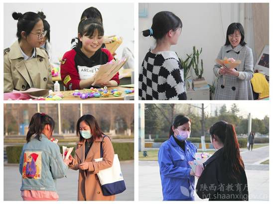 【咸阳职业技术学院】该院工会开展了“巾帼言志建双高 踔厉奋进新征程”岗位建功活动、“我们的节日—巾帼建功 奋进双高”读书演讲和征文活动,以及丰富多彩的女职工文体活动,庆祝第112个“三八”国际劳动妇女节的到来,教育引导全院女职工以扎实的行动彰显新作为、展现新风采,彰显了女职工的时代风采和良好精神风貌。该院师范学院小学教育、学前教育、早期教育等专业学生利用空闲时间,运用手工课所学技艺,精心制作600束手工黏土花送给女老师和女职工,表达节日的祝福和感恩之情。此外,该院还积极通过微信公众号、LED屏等方式,为全院女职工们送上节日的美好祝福。