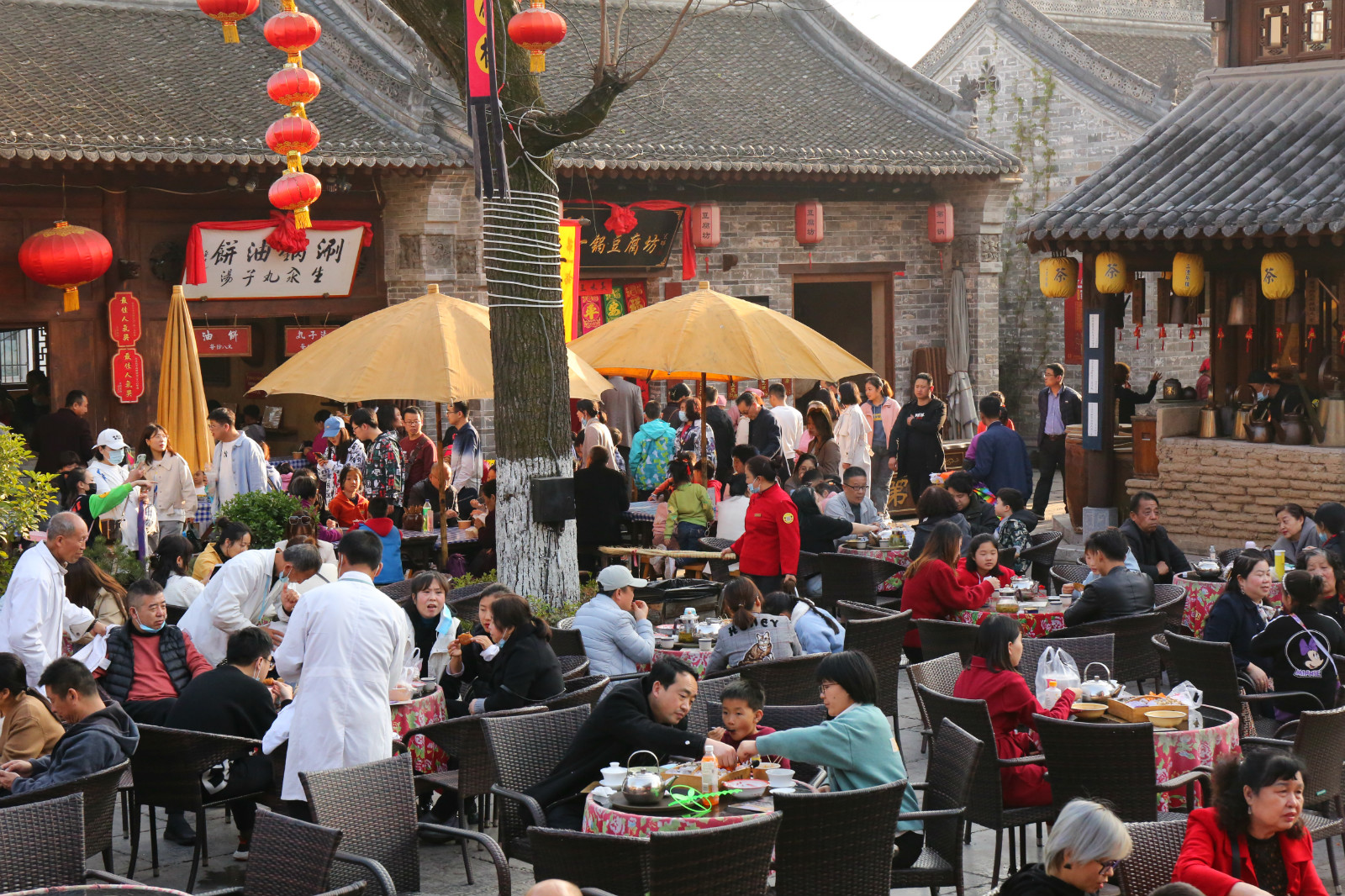 尝一个三代传承的油糕,裹挟着红糖馅的油糕外酥里嫩,简直甜到了人的心坎里。吃一口核桃香气铺满鼻腔的陇县油旋,唇齿都留香。肉多料足的粉汤酥肉,肉质上乘的老马家泡馍等种种热量充足的食物,全都带着春天的气息,呼啦啦地满足着所有人的胃。边走边逛,醪糟和牛奶碰撞出清甜的味道,大刀面等各式面食阐释着曾经劳作者的智慧。