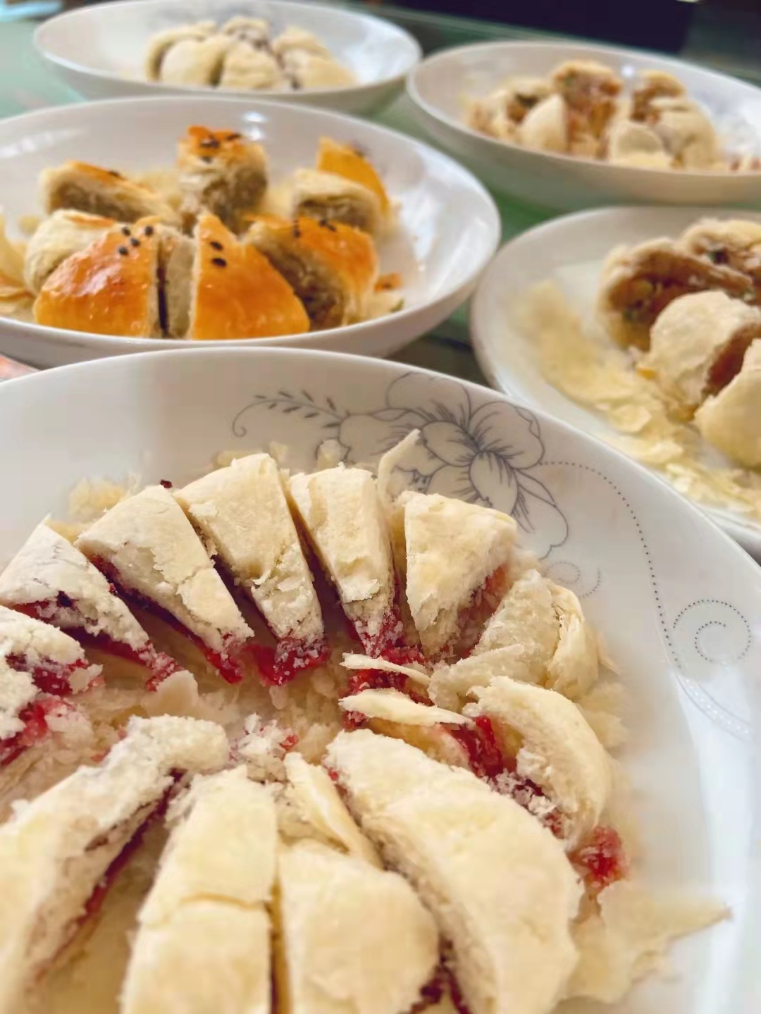 循着青石板路一直向前走,路过古色古香的座座建筑,看到红黄靓丽的各色旌旗,这一趟,光是闻着满街的食物香味就觉得非常满足了! 一碗红油飘香的臊子面,酸辣筋道的削筋面,唇齿留香的桂花蜜粽,鲜嫩爽滑的卤汁豆花,软糯筋道的卤猪蹄,落地开花的酥脆麻花,从明清开始备受大家喜爱的老点心,到醋粉,饸饹面,西府肉夹馍,西府合盘,菠菜面,麟游血条面……酸的、咸的、辣的、甜的,总能你的味蕾嗨到停不下来。