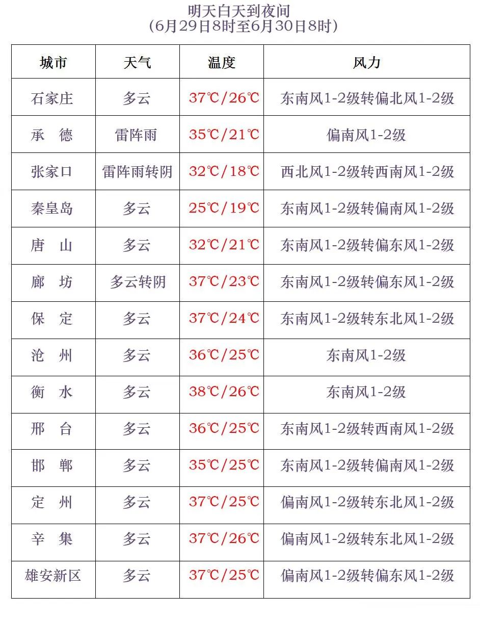 29至30日,保定、廊坊及以南地区最高气温可达35~39℃。
