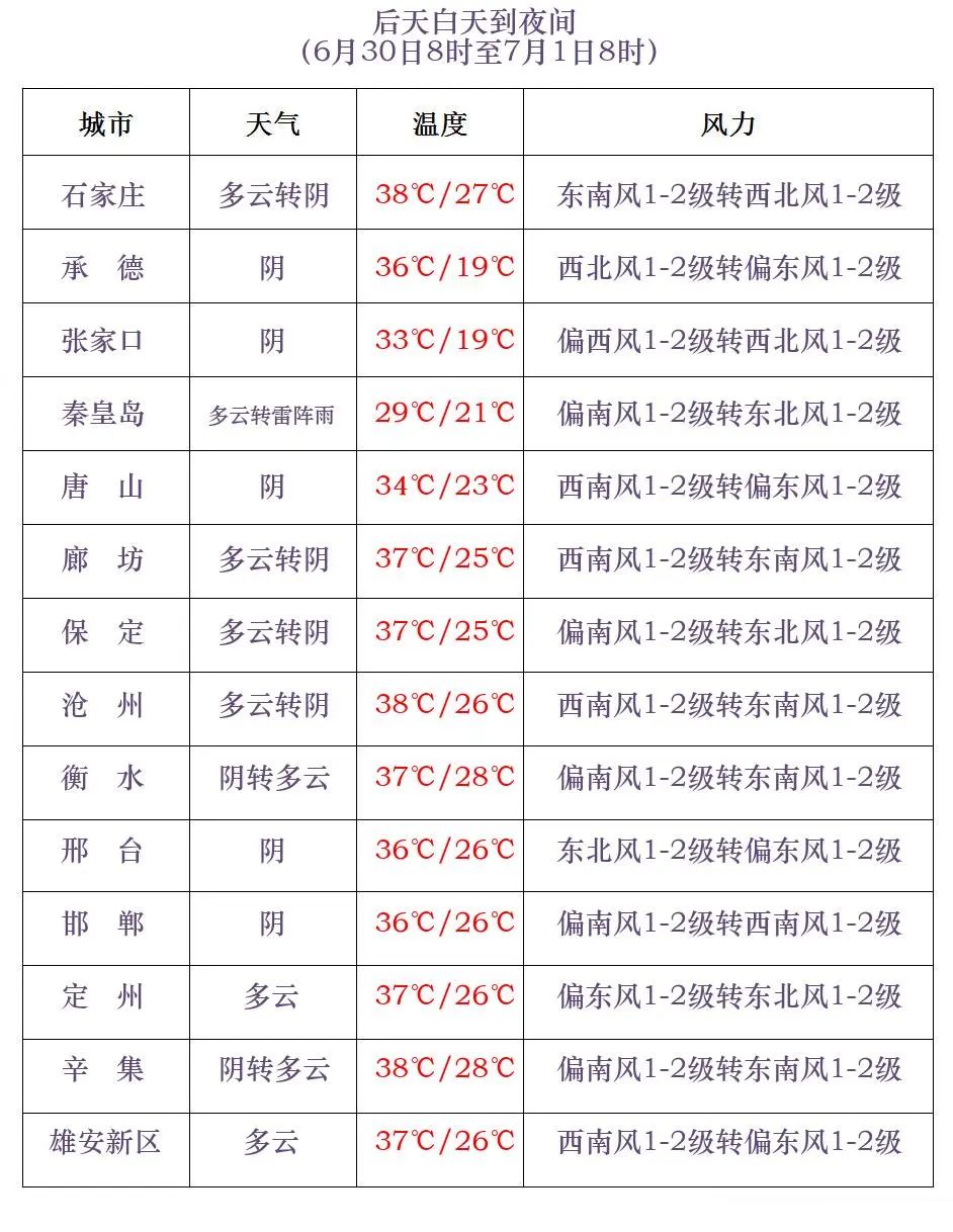 河北省气象台2024年6月28日11时发布天气预报: