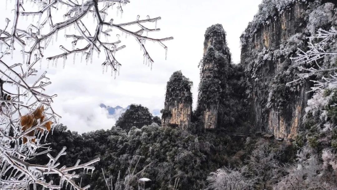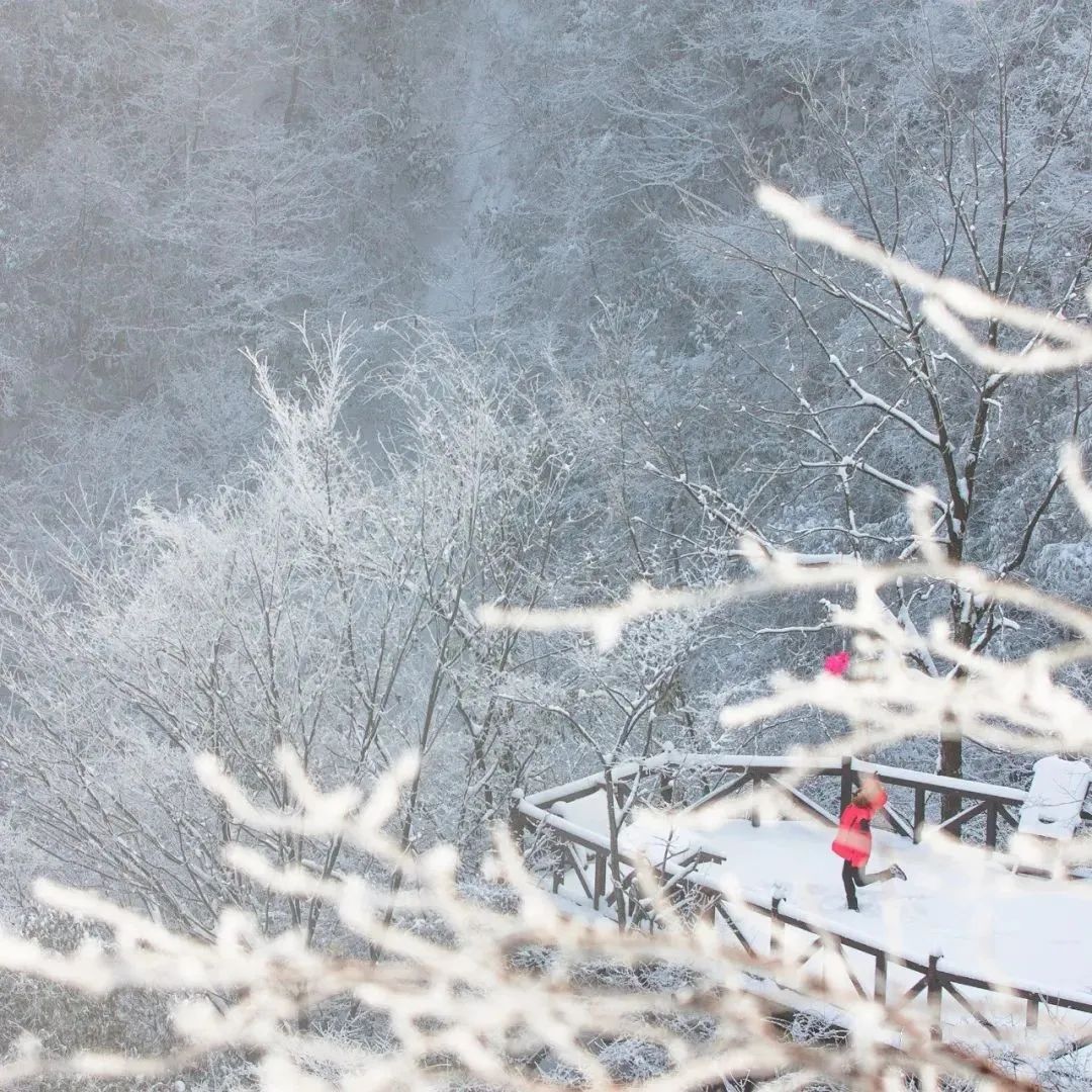 冬日的柴埠溪落雪盈盈,玉琢银装,千岩竞秀,云雾缭绕。一片冰雪即为一个世界,在这里,归于自然,隐于山谷,用心感受这片如画山水。