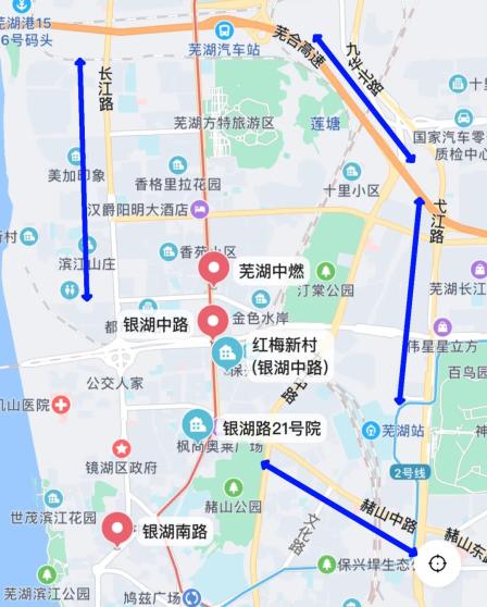长江路、银湖路、九华路、弋江路、凤鸣湖路、鸠江路、中江大道、梦溪路等。