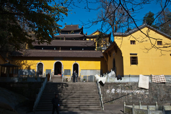 九华山是寺庙最多的佛教名山,据传在其鼎盛时的清代,山上寺庙多达三百六十余座,僧尼有4000人左右。现在九华山有九十九座寺庙,实际上开放的寺庙也有九十三座,其中国家重点寺庙九座,省级重点寺庙三十座,佛像万余尊,文物2000余件,僧尼700余人。在上九华山的路上,远远就看见一座杏黄色的墙院,它就是甘露寺,也是我们在九华山看到第一座寺庙,可惜时间有限,我们的汽车未能在此停留,未能拍下甘露寺,不过如此之多的寺庙,要一一拍下,估计不是一时半会能做到的。
