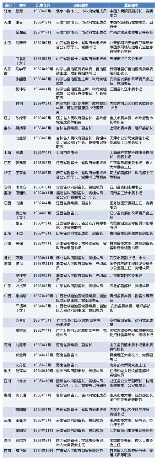 今年至少25省份41名省级政府副职履新一览表