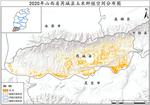 2020年山西省玉米种植分布数据的生产是遵循了农业遥感的基本原理,依据山西省玉米播种及生长规律制定像素分类策略,利用国内外中分辨率卫星影像,由计算机智能算法提取得出。该数据产品已通过抽样检查验证,数据的像素类别精度为85%(±2%)。