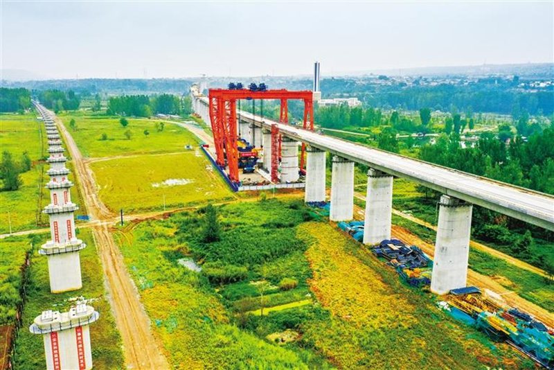 7月9日,建设中的西康高铁浐河特大桥。 袁景智摄