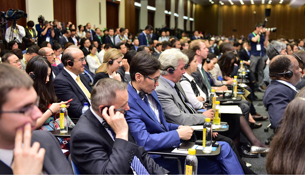 外交部省区市全球推介活动现场认真聆听的驻华使节们