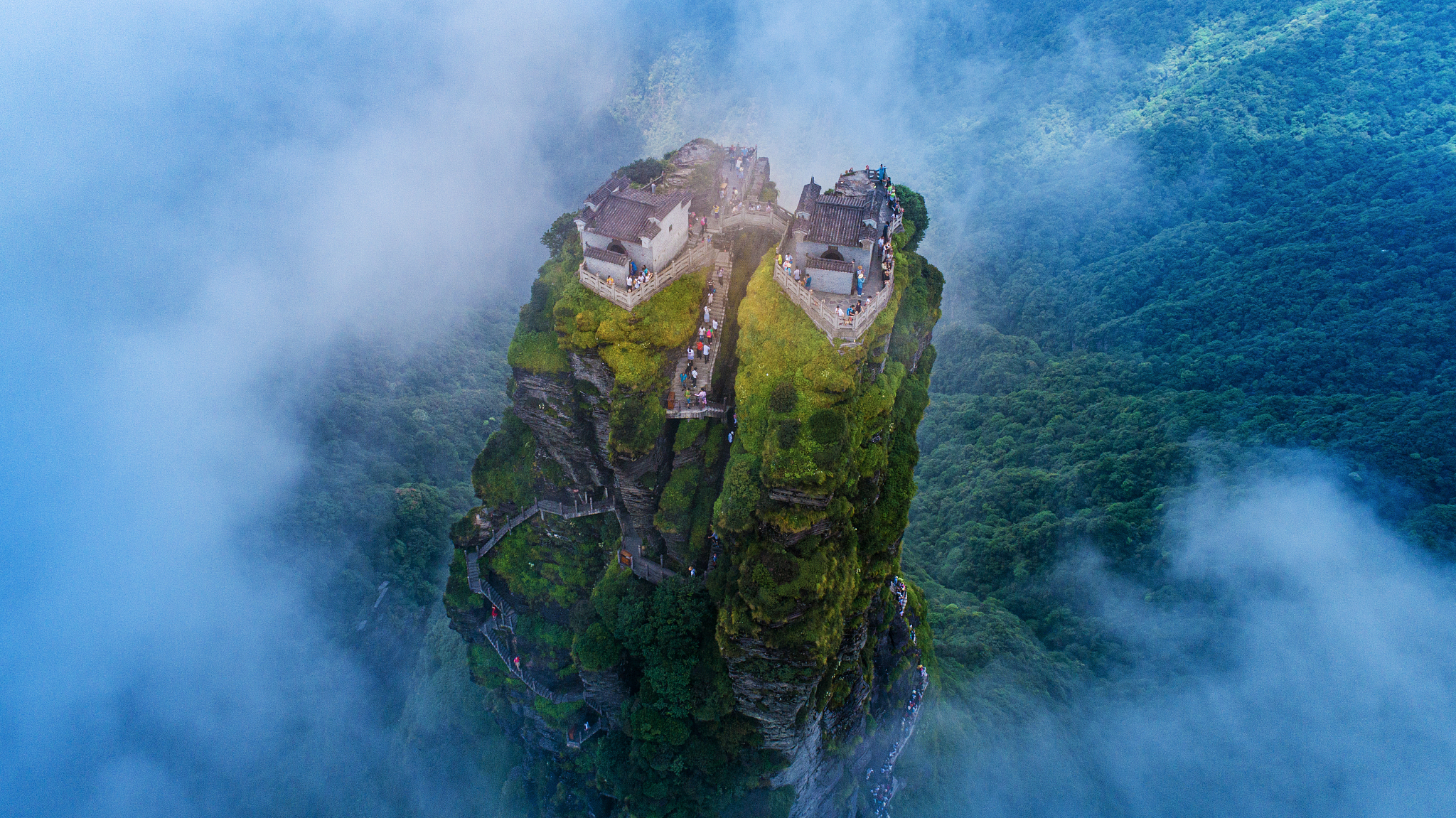 梵净山“红云金顶”上部分为两峰,各建有一座佛殿。 视觉中国 图