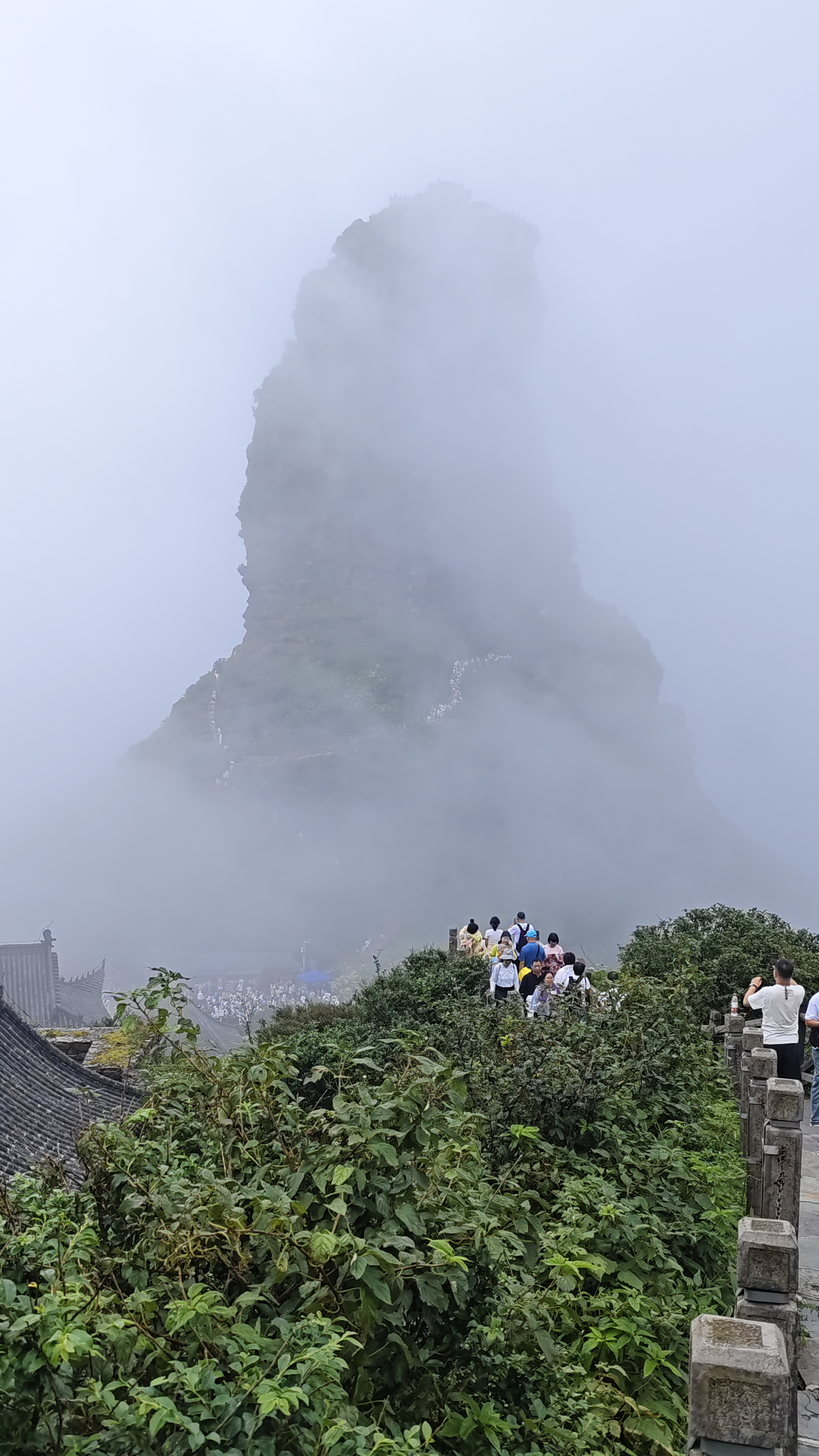 7月27日上午,梵净山在云雾中露出“独隆于天地”的雄姿。 澎湃新闻记者 王珏玮 图