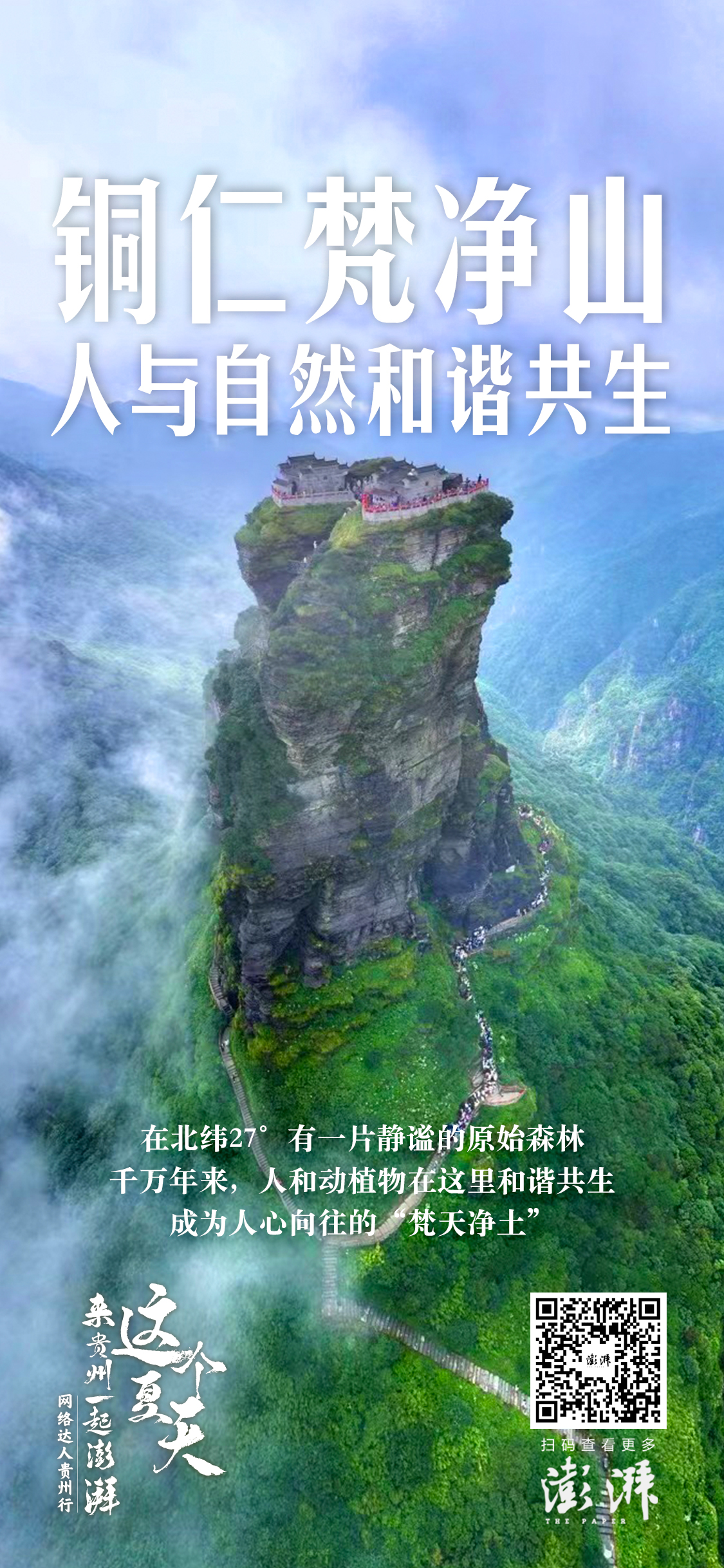7月27日,由贵州省委宣传部和澎湃新闻()举办的“这个夏天,来贵州一起澎湃”为主题的文旅探访活动走进“中国的世界遗产”梵净山,在感受自然风光的同时,探索铜仁推进文旅发展和生态保护的路径与实践。