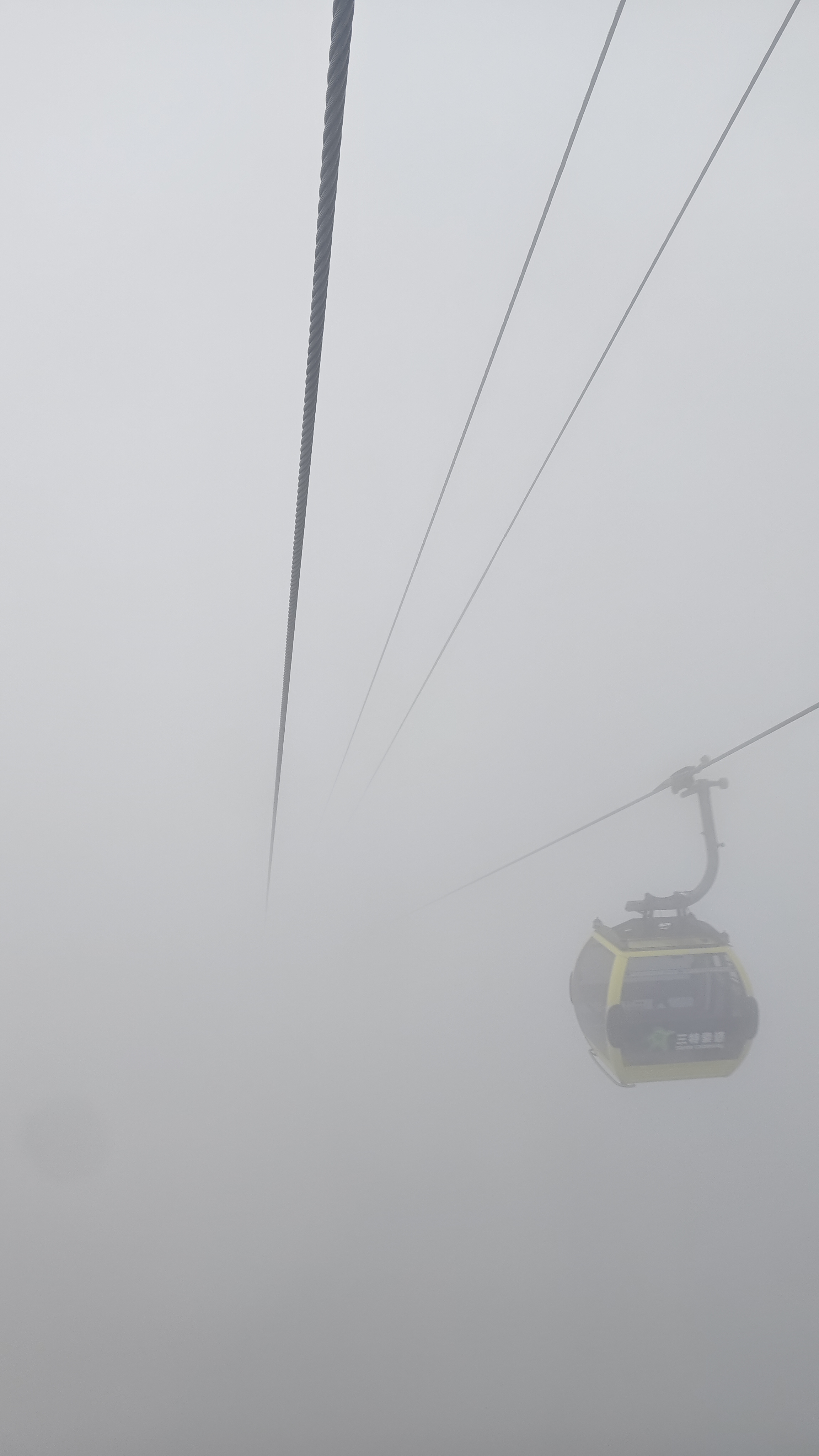 7月27日上午,梵净山缆车在云雾中依稀可见。 澎湃新闻记者 王珏玮 图
