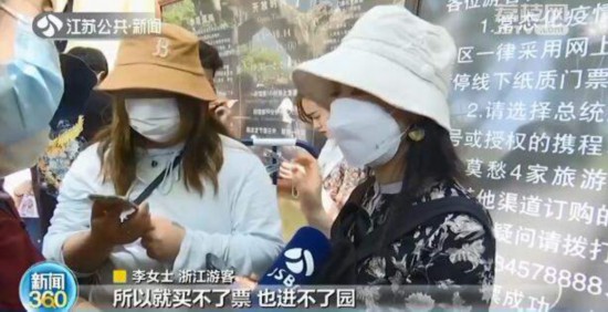 由于南京总统府景区采取的是线上实名预约制,只针对60周岁老人提供线下售票。一些没有提前预约的游客,只能在门口拍照打个卡。“出来玩的时候没有事先做好攻略,到现场以后我们预约不到票,所以就买不了票,也进不了园。”浙江游客李女士表示。