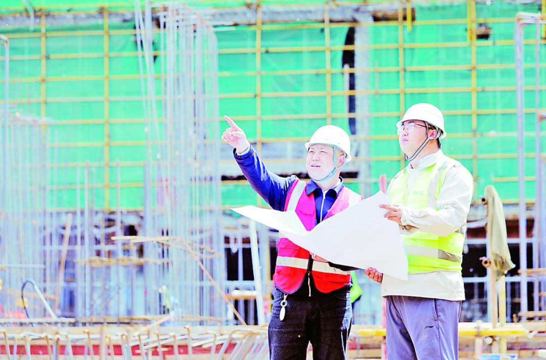 廊坊北站及周边综合开发建设项目施工现场,工程师正在根据图纸,梳理工作进度,全力以赴推进工程建设。