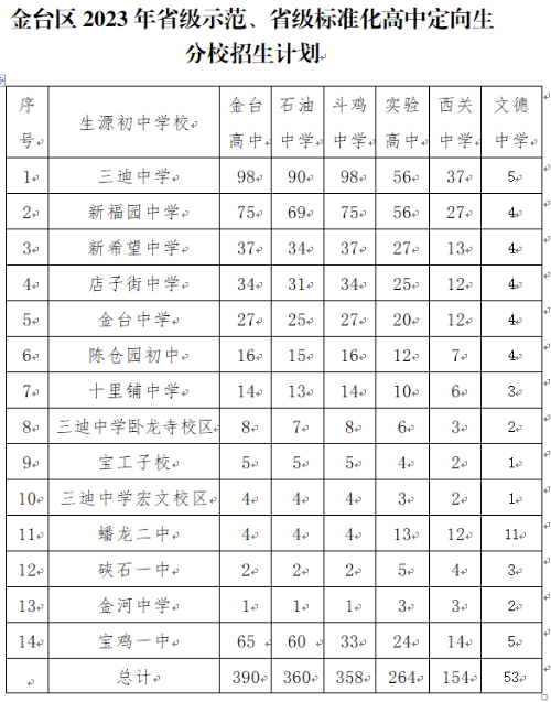 2023年宝鸡市教育局批准我区普通高中招生计划3308名,其中公办招生计划1900名,民办招生计划1408名。具体分校招生计划如下: