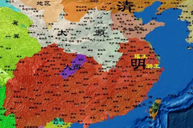 1644年崇祯皇帝自尽后,北京及中原已被清军控制,残余明廷在应天府拥立福王朱由崧为弘光皇帝,可以算是正统汉人政权的又一次南移,史称“南明”。