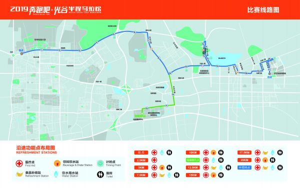 2019武汉“奔跑光谷”半程马拉松赛起点设在光谷广场,半程终点设在东湖新技术开发区未来科技城,健康跑终点设在光谷国际网球中心。