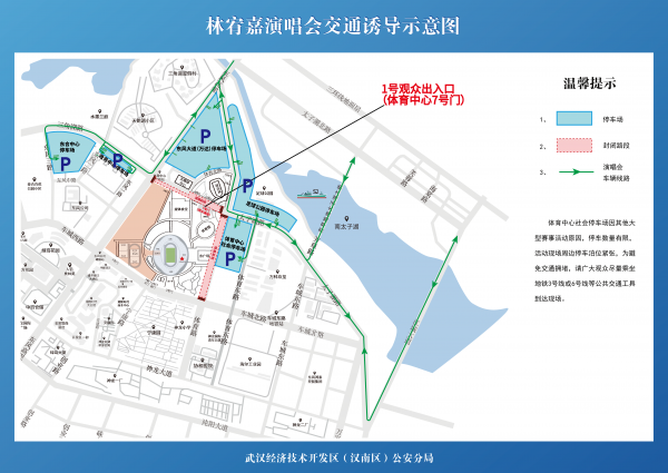 开车前往观看演唱会的市民可以将车停在体育中心社会停车场(因大型赛事活动被占用,仅余少量停车位可供停放;仅开放太子湖路和体育东路进出口);东风大道(万达)停车场;足球公园停车场;政务中心停车场;东合中心停车场。