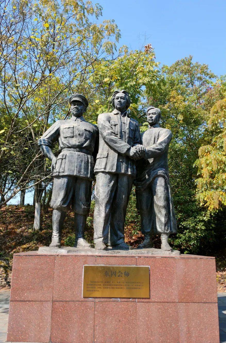 雕塑《东固会师》 (中:毛泽东,左:朱德,右:李文林,蔡玲 摄)