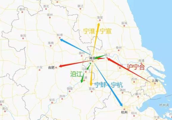 进一步,在京沪高铁、沪宁城际、宁杭高铁、宁启铁路、宁安城际构造沪宁合杭“一小时圈”的基础上,依托沪宁合创新服务中枢发展带明星城市富集、创新资源密集的优势,继续强化南京都市圈创新驱动的引擎作用。