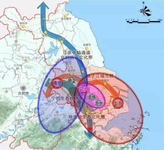南京集中力量发展江苏省唯一的国家级新区——江北新区,空间上更靠向安徽,拉远了和镇、扬的距离。
