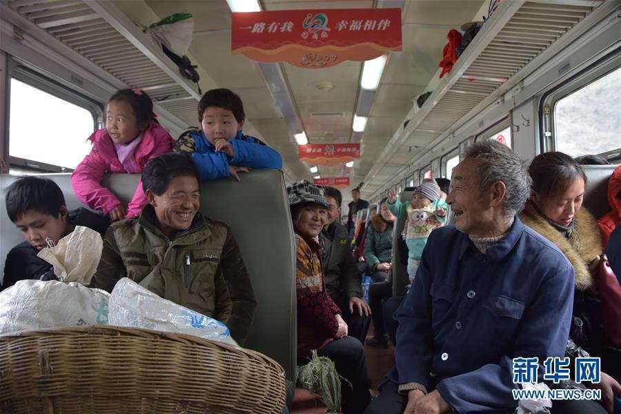 1月11日,只有三节车厢的8362次列车驶进徐家坝车站。当日,近200名山区群众乘坐西安铁路局汉中至阳平关8361/8362次列车外出赶集。8361/8362次列车全程117公里,设有14个站点,最高票价7.5元,最低票价只需1元。这列只有三节车厢的普通绿皮慢车,如今已成为沿线群众出行的首选交通工具,被称为秦巴山区中的“火车大巴”。新华社记者 张晨俊 摄