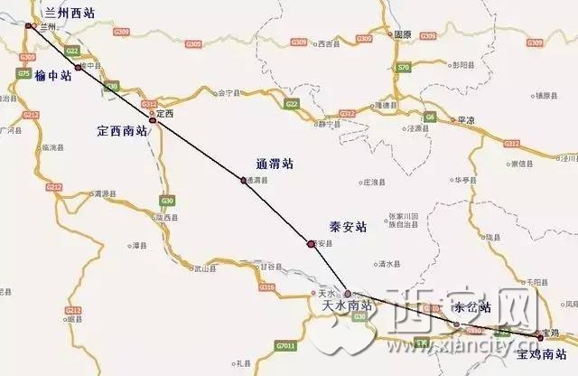 宝兰客运专线全程401公里,是国家中长期铁路网规划中徐兰客运专线的西段,东接徐郑、郑西、西宝客专,西连兰新高铁,自陕西省宝鸡市宝鸡南站引出,沿渭河南岸西行,沿途设有天水南、秦安、通渭、定西西、榆中等车站,终至兰州枢纽的兰州西客站。