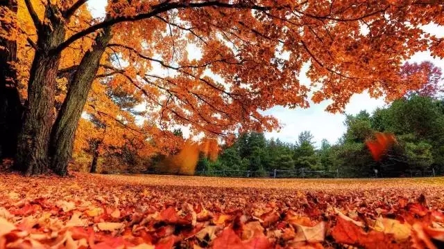 画面中蓝天所占的比例,往往决定着作品的成败,小块的蓝色点缀,比一片的天空,更能衬托出树叶的色彩。